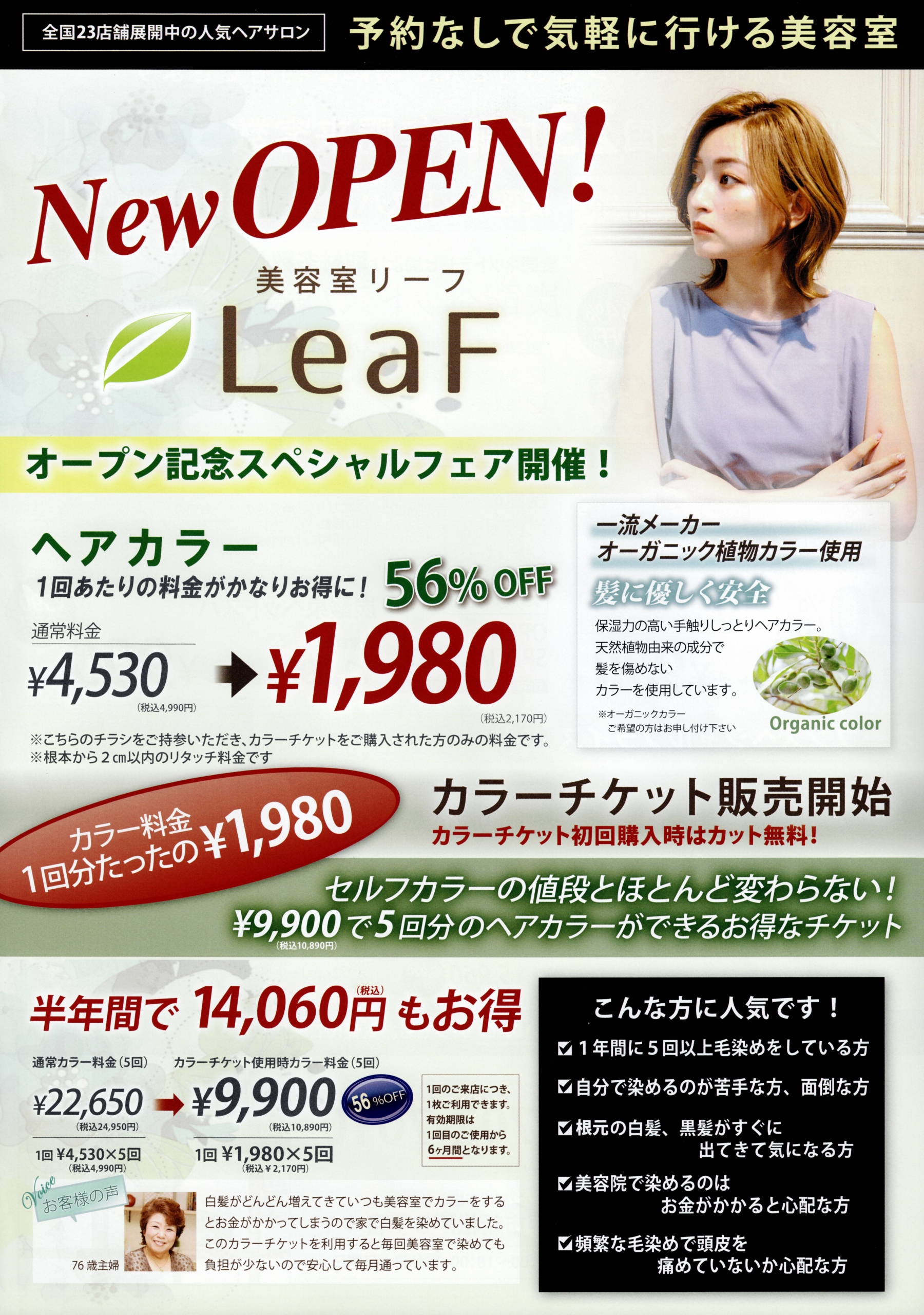 美容室を広く全国で展開するFORTEグループが、フランチャイズとして急発展させている「LeaF(リーフ)」ブランド。異業種1号として加盟させて頂きました。